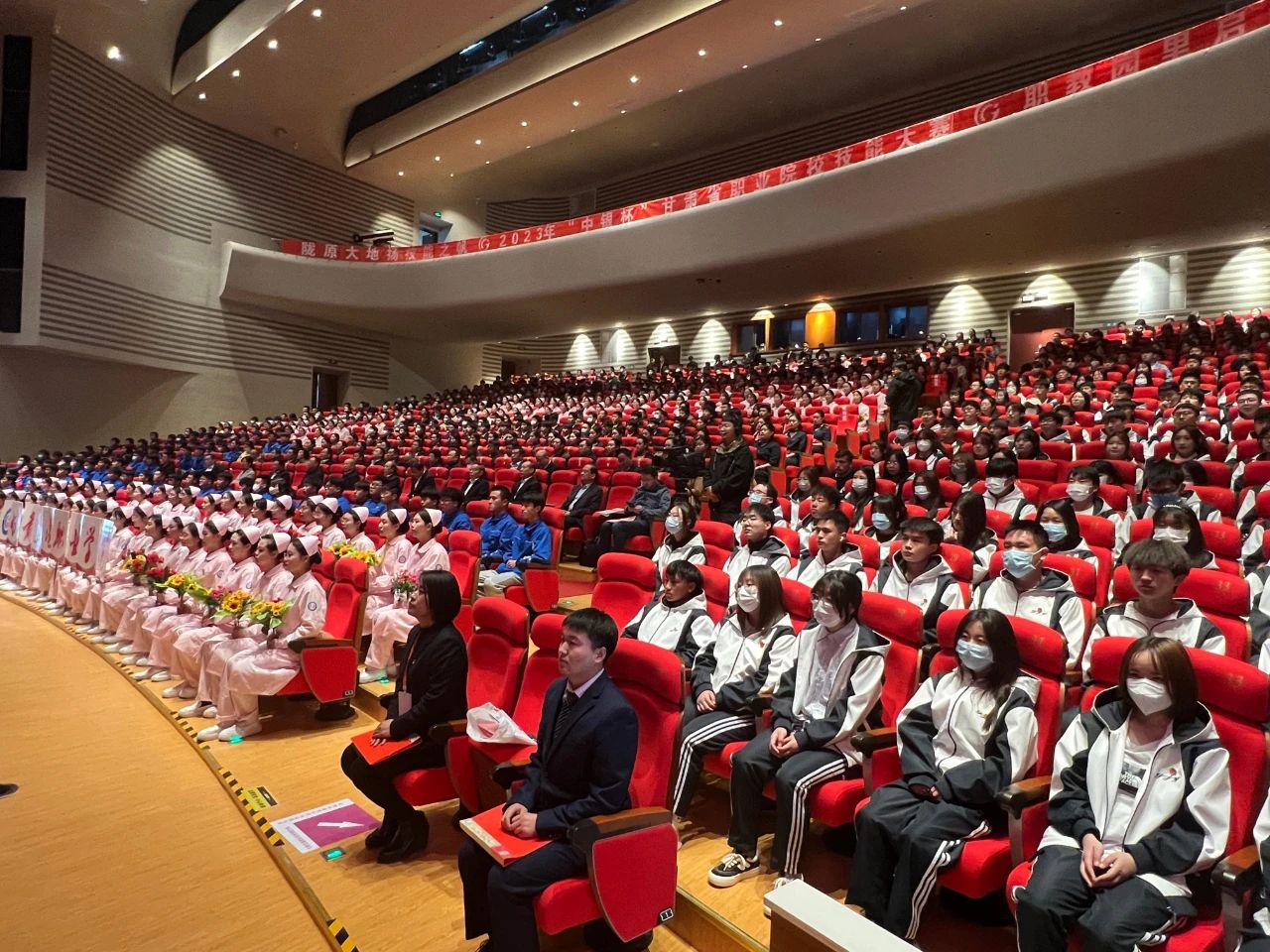 3月31日,由省教育廳、省人力資源和社會保障廳、省財政廳、省衛(wèi)生健康委員會、省總工會、甘肅中華職教社6部門聯(lián)合舉辦的2023年“中銀杯”甘肅省職業(yè)院校技能大賽開賽儀式在蘭州新區(qū)職教園區(qū)服務(wù)保障中心舉行,其余23個賽點設(shè)立分會場,各市州教育局有關(guān)負責人員,中高職學校、技工技師學校師生約1萬人在線觀看開賽儀式直播。