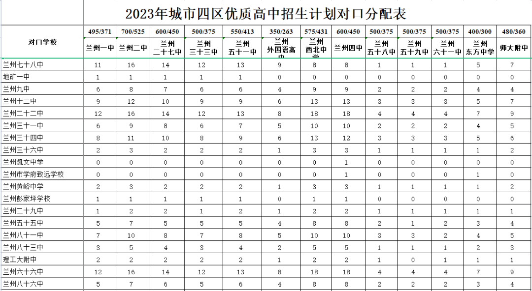 2023年蘭州市城市四區(qū)初中招生計(jì)劃